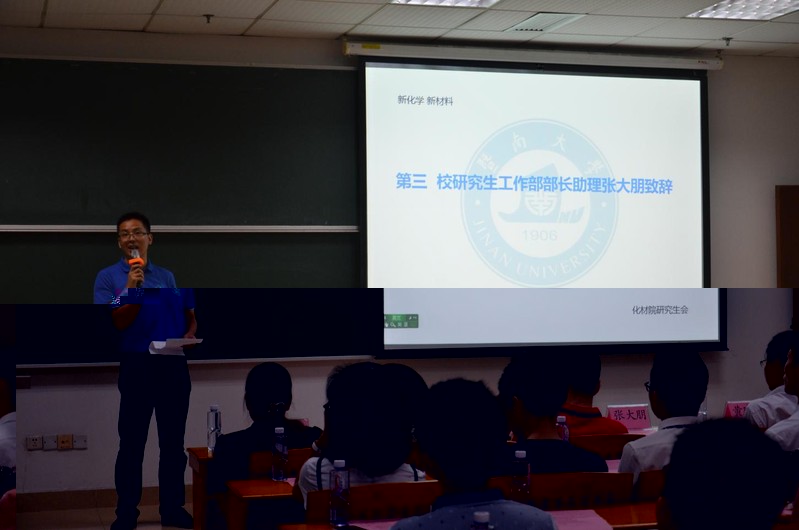 校黨委研究生工作部張大朋老師首先緻辭。他對各位支持研會工作的老師表示感謝,對于研會未來發展,他建議要堅持民主集中制,要求研會所有成員必須全力以赴,全心全意為同學服務。