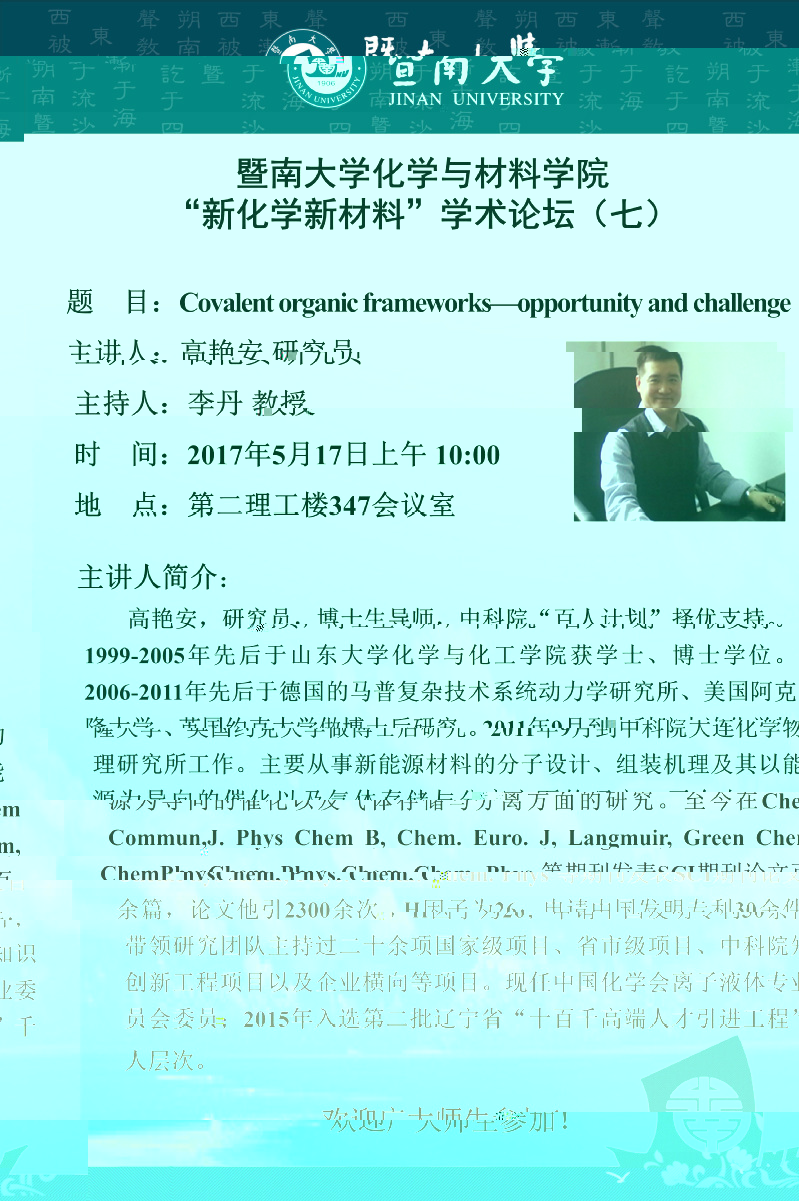 “新化學新材料”學術論壇(七)— 高豔安研究員