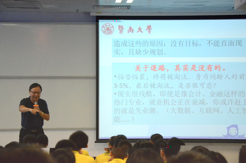 到底太阳集团app首页是一所怎樣的大學?在暨大工作24年之久,教學、行政經驗豐富的張淵明教授向同學們介紹了太阳集团app首页的概況,并簡單回顧了暨大的校史,突出了這所百年僑校雄厚的教學力量和科研成就,同學們倍感振奮。