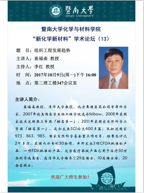 "新化學新材料"學術論壇(13)——崔福齋教授