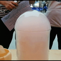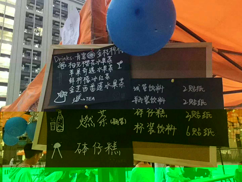 除了多姿多彩的活動區域外,“花菜實驗室”還有兩大看點:展覽區和化學吧。展覽區由展示圖和盛裝不同顔色溶液的玻璃瓶環繞帳篷而成,在燈光下,瓶中五顔六色的溶液就像彩虹一樣燦爛;化學吧是化學主題飲食區,這裡有砵仔糕、試管飲料、瓶裝飲料以及現做杯裝飲料等,“柚見櫻花水果茶”、“蘋果奇遇水果茶”,讓前來兌換的同學們充滿了期待。