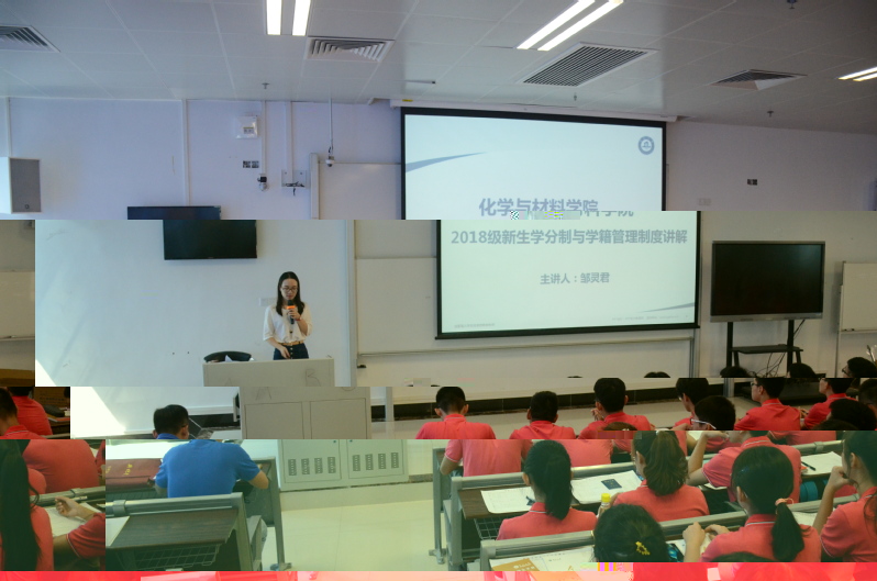什麼是學分制?滿足什麼條件才能正常畢業?如何科學地選課與提升績點?出現挂科會造成哪些嚴重後果?化材院的培養方案如何解讀?哪些事情應該找輔導員/教務秘書?針對剛剛經過高考進入大學的2018級新生,鄒靈君以學長們鮮活的案例為各位同學細心解答了這些疑惑,各位新同學首次接觸大學學制相關知識,時而托腮認真聆聽、時而手捧學生手冊仔細閱讀、時而側身相互讨論,一個個聚精會神,生怕錯過某一細節。