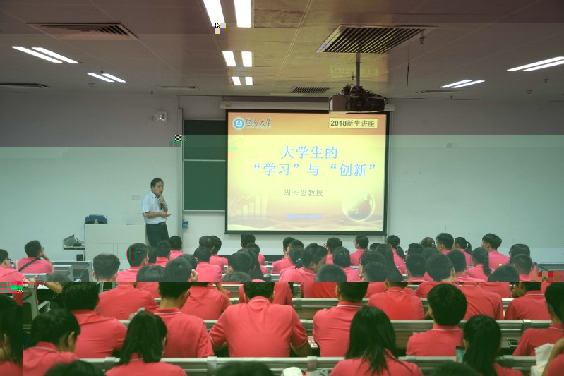2018年9月12日19:00,化材院名師周長忍教授在番禺校區N113課室,為學院2018級全體新生帶來一場别開生面的“大學生的‘學習’與‘創新’”講座,輔導員孫嘉恒擔任講座主持。