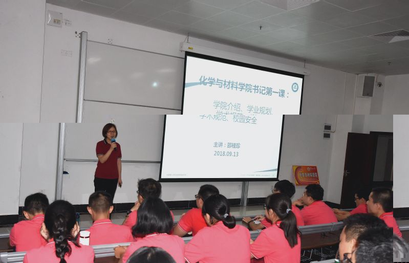2018年8月13日是本科新生訓練營的第4天,武術訓練後,化材院的“小蘋果”們早早齊聚教學樓N114,共同期待學院黨委邵桂珍書記為他們精心準備的第一課——“學術規範、學業規劃及校園安全”,8點30分全場座無虛席,“第一課”正式開始。