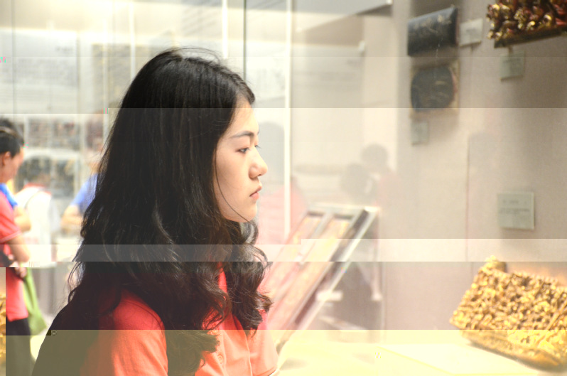 步入省博,同學們心中厚重的曆史感油然而生,自覺地放慢腳步、安靜地欣賞:細緻的雕工,精美的花紋,古老的藏品琳琅滿目,應接不暇。2018級化學工程與工藝的王靖雯來自新疆,遊覽過後感慨萬千:“廣東省博物館,是一個收藏着大量珍品,蘊含着豐富知識的地方。那是一個遊學聖地,既可以讓人大飽眼福,又可以汲取知識,豐富我們的‘内存’。今天的博物館參觀,使我對廣東的悠久曆史産生了濃厚的興趣。”她說,“走進潮州木雕展廳,流光溢彩的漆金技使人驚歎,當我全神貫注看着木雕時,如身臨其境,木雕中的人物仿佛在向你娓娓講述着、表演着那一段段潮州曆史故事,那些能工巧匠的精湛技術讓人不得不歎服。”