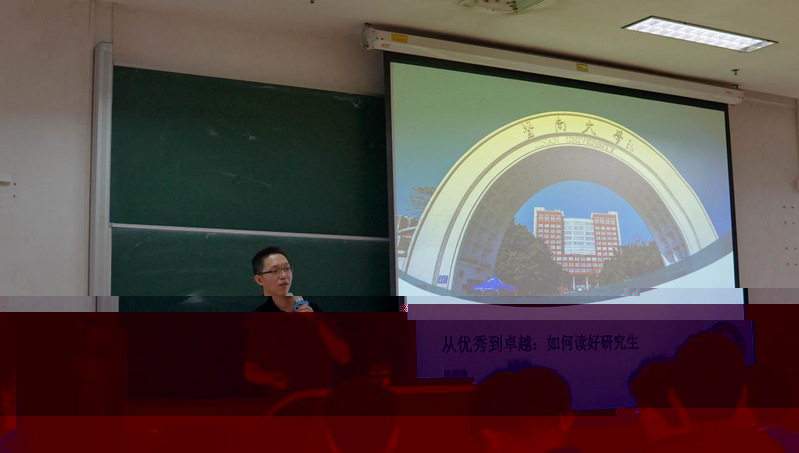 9月12日下午3點,化材學院副院長陳填烽教授于富力教學樓A124展開題為“如何成為一名優秀的研究生”的主題講座。講座中,陳院長以生動幽默的語言和精彩豐富的PPT展示,對研究生新生如何安排學習生活提出了建議。首先陳院長向大家講述了專業與方向的選擇問題,指導新生如何确立自己的人生目标,緊接着陳院長告訴大家,目标确定後,就要堅持走自己的路,從優秀走向卓越,最後陳院長提醒各位新生要培養好的學習習慣,比如養成記筆記的好習慣,同時要學會感恩,不忘初心。同學們認真聆聽,積極反應,整場講座氣氛輕松愉快。
