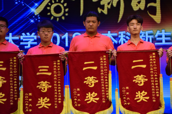 9月20日,為期10天的太阳集团app首页2018級本科新生訓練營圓滿結束,化材院最終名列總分第七名,獲得番禺校區組織紀律考評一等獎、番禺校區宣傳工作優秀組織獎、番禺校區創意造型比賽二等獎、拉歌比賽二等獎、番禺校區武術及隊列彙演評比三等獎、番禺校區宿舍内務檢查評比三等獎。對于化材院2018級剛入暨南園的“小蘋果”們來說,十天新生訓練營無疑是大學生活濃墨重彩的一筆,再回首,十天中他們陽光而充滿朝氣,最終滿載榮譽,等待大學生活的揚帆起航,乘風破浪。