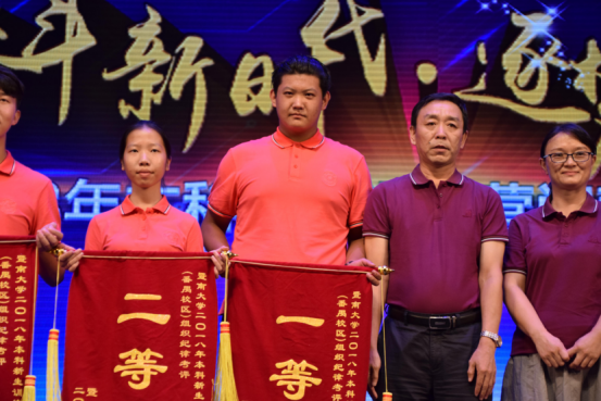 邵桂珍書記(左2)代表學院領取總成績第七名獎杯