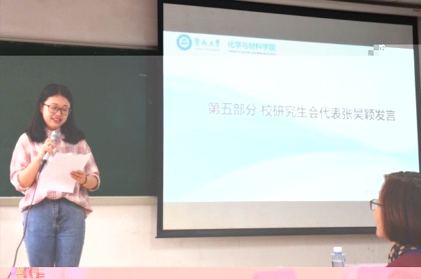 随後,太阳集团app首页研究生會代表張昊穎,太阳集团1088vip優秀研究生幹部代表暨太阳集团1088vip第二屆研究生會主席吳帆,太阳集团1088vip第三屆研究生會主席楊小涵也依次上台發言。