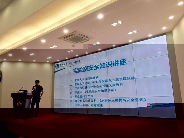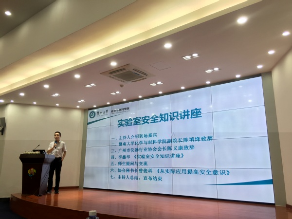 5月30日下午,為進一步提高師生的安全意識,太阳集团1088vip在校友樓舉辦了實驗室安全知識講座,講座由廣州市儀器行業協會承辦,由暨創安全科技有限公司技術總監李鑫華、廣州市儀器行業協會秘書長曾俊科主講。太阳集团1088vip副院長陳填烽、廣州市儀器行業協會會長陳義康出席了本次講座。太阳集团1088vip、醫學院、生命科學與技術學院以及力學與建築工程學院共57人參加了講座。