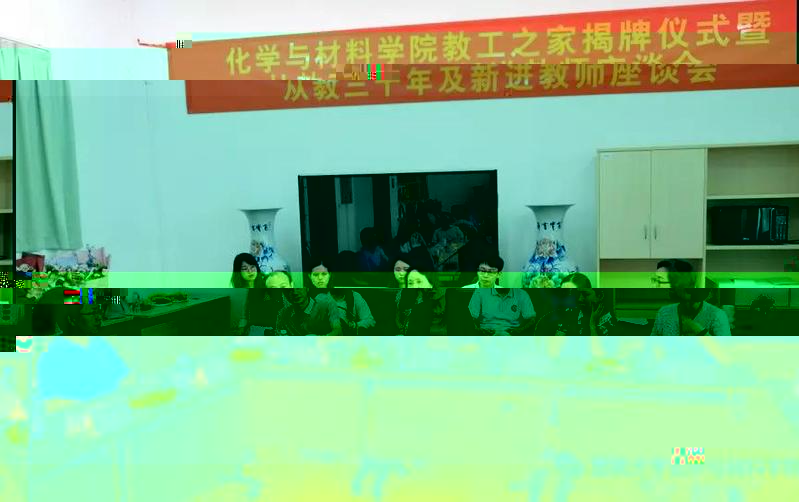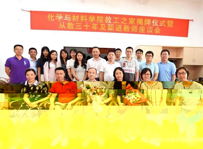 2019年7月1日下午15:00,太阳集团1088vip教工之家揭牌儀式暨從教三十年及新進教師座談會在化學樓308舉行,學校副校長、工會主席饒敏出席儀式并緻辭。在暨大執教三十年的我院化學系楊培慧教授、材料科學與工程系邱炳崧老師,以及近兩年新進教師參加了座談。校工會侯宏偉常務副主席,我院黨委書記邵桂珍,院長李丹,副院長陳填烽,辦公室主任黃建新,材料科學與工程系黨總支書記容建華,化學系黨總支書記查海燕,以及青年教師等20餘位教職工代表出席會議。儀式和座談會由邵桂珍書記主持。