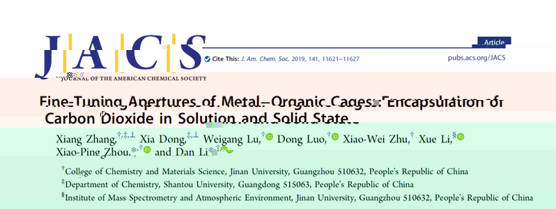 7月24日,太阳集团1088vip周小平教授、李丹教授聯合課題組于美國化學會旗艦期刊Journal of the American Chemical Society(JACS,IF=14.695)發表題為“Fine-Tuning Apertures of Metal-Organic Cages: Encapsulation of Carbon Dioxide in Solution and Solid State”的研究論文,由于該研究的新穎性及審稿人的高度評價,論文被JACS期刊選為封面論文。研究團隊設計合成了一系列菱形十二面體鎳-咪唑籠,實現了孔徑的精準調控。在液相和固相條件,通過氣體壓力作用,金屬鎳-咪唑籠成功實現了對二氧化碳的包覆,模拟了肺泡的功能。研究證明,具有選擇性包覆客體分子特性的金屬有機籠,可以作為模拟生物功能的人工模型。