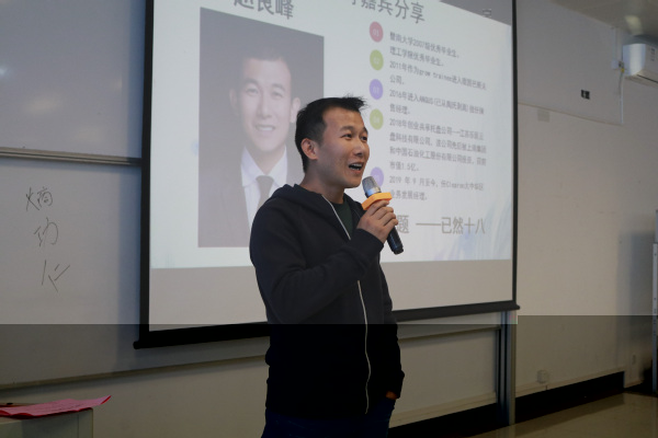 最後進行分享的是2007級優秀畢業生趙良峰。他以“已然十八”為題,分享了自己從畢業到工作、再到如今創業成功的職業生涯經曆,并結合熱點,從“熵”“功”“仁”三個角度,建議同學們在十八歲這個年齡段該做什麼、該如何管理自己寶貴的時間。