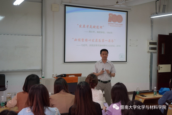李丹以《從“發展才是硬道理”到“大家好才是真的好”》為題,從鄧小平南方談話、習近平總書記在慶祝改革開放40周年大會講話中有關發展的論述出發,以黨史為線索,結合自身學習、工作、生活的經曆和思考,旁征博引、深入淺出,講述了自己對于“發展”的理解感悟。他不僅從理論層面講述了“發展”的深刻内涵和變遷過程,更從團隊精神、項目管理、溝通技巧、時間管理、管理人生等視角,深刻闡釋了把握新階段、貫徹新理念、構建新格局的核心要義和建設社會主義現代化強國新征程上化學與材料學科師生的使命擔當。
