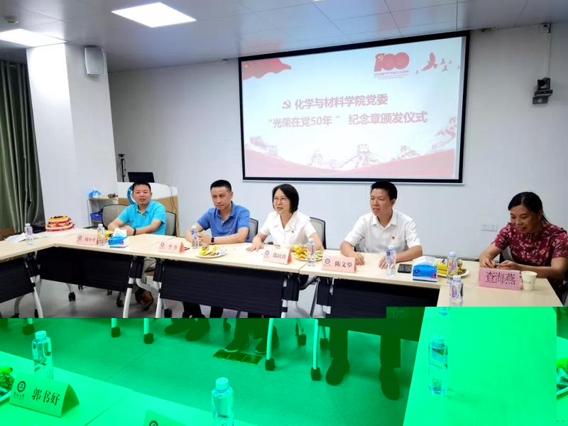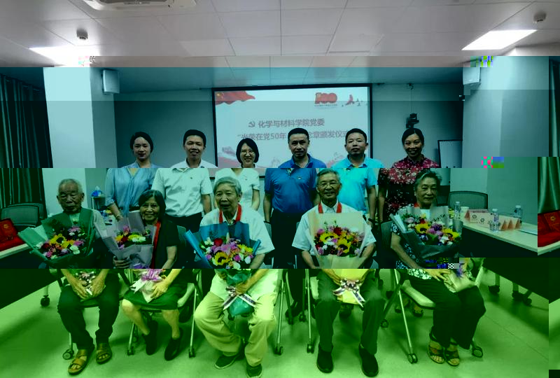 6月30日上午,時值建黨一百周年紀念日前夕,太阳集团1088vip黨委為周惠琳、蔡宗源、郭書好、邱林、肖錦榮等5名老黨員舉行了“光榮在黨50年”紀念章頒發儀式。學院黨委書記邵桂珍,院長、黨委副書記李丹,黨委副書記兼學院辦公室主任陳文舉、副院長周小平、化學系黨總支書記查海燕及學院辦公室、超配所部分年輕黨員出席儀式,給老黨員頒發紀念章、敬獻鮮花,濟濟一堂共慶“黨的生日”。頒發儀式在學院超分子配位化學研究所一樓會議室舉行,邵桂珍主持儀式。