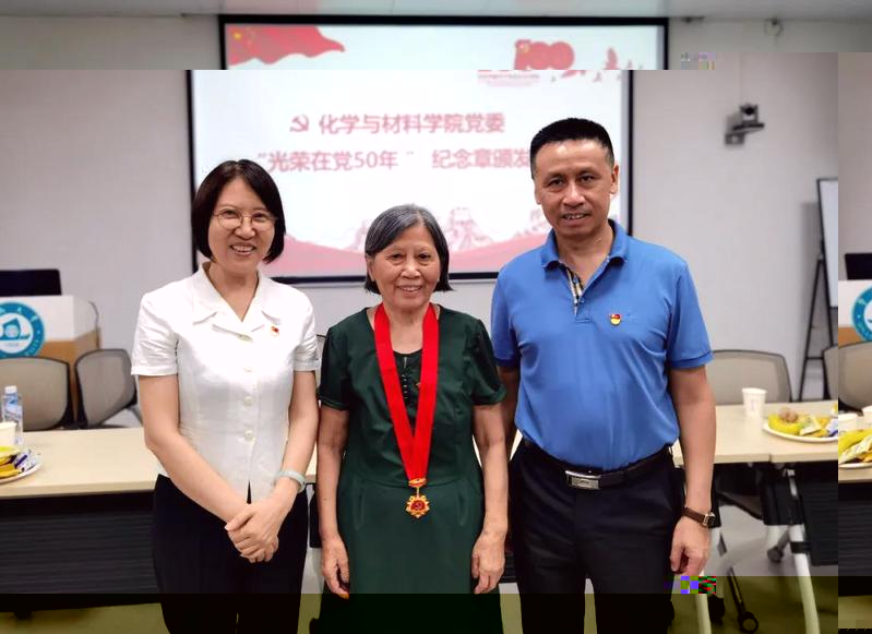 邵桂珍代表學院黨委向獲頒紀念章的各位老黨員表示熱烈的祝賀和崇高的敬意。她說,慶祝中國共産黨成立100周年之際,黨中央首次頒發“光榮在黨50年”紀念章,體現了黨和人民對老黨員曆史貢獻的充分肯定。離退休老黨員是學院事業的開拓者、建設者,為高等教育工作、化學與材料學科發展和人才培養等各方面付出了大量的心血和汗水,做出了很大貢獻。希望老同志保持健康身體、愉快心情,永遠保持老黨員、老教師的風範,繼續發揮師德師風引領示範、學院與校友之間的橋梁紐帶等重要作用。
