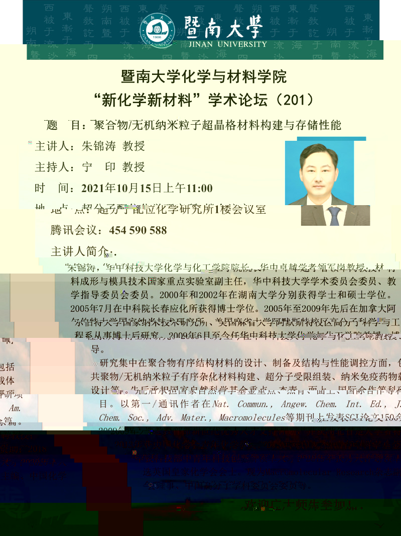 “新化學新材料”學術論壇(201)——朱錦濤教授
