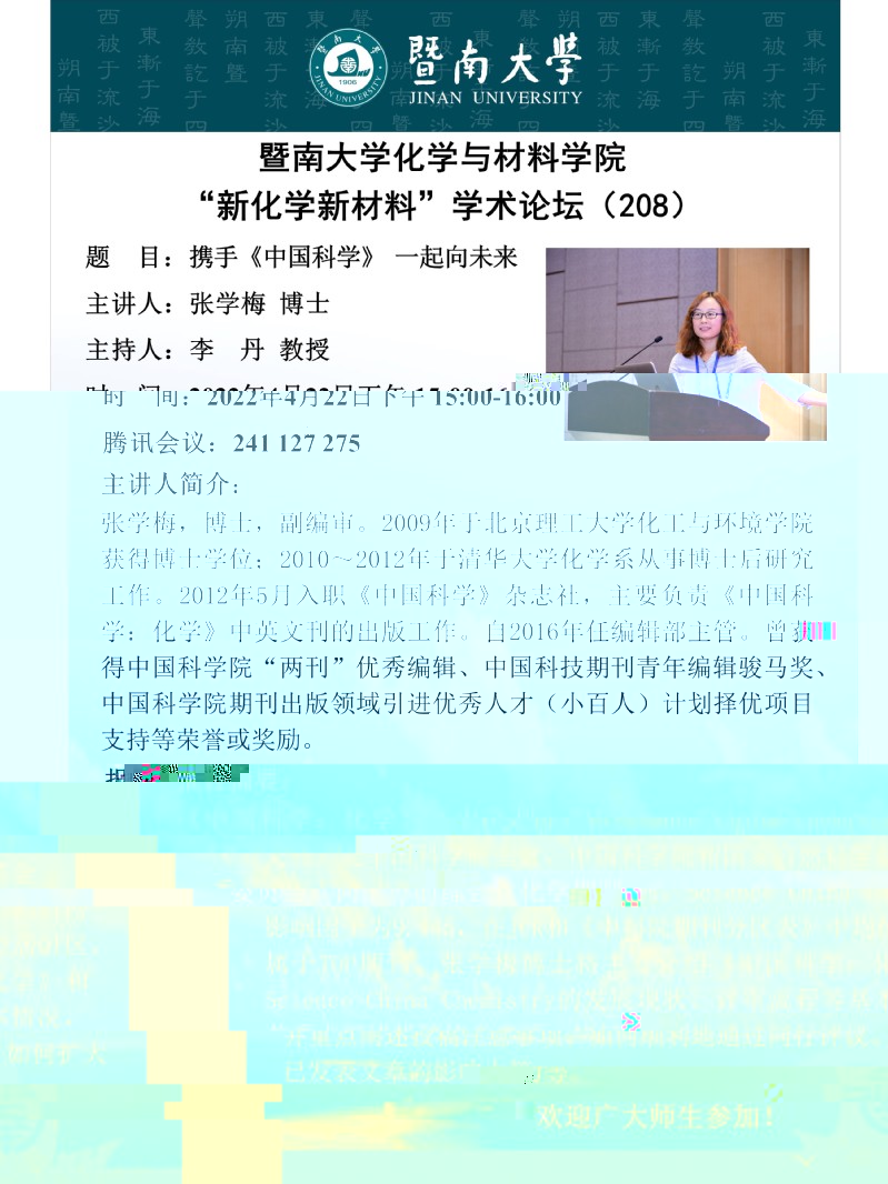 題 目:攜手《中國科學》 一起向未來