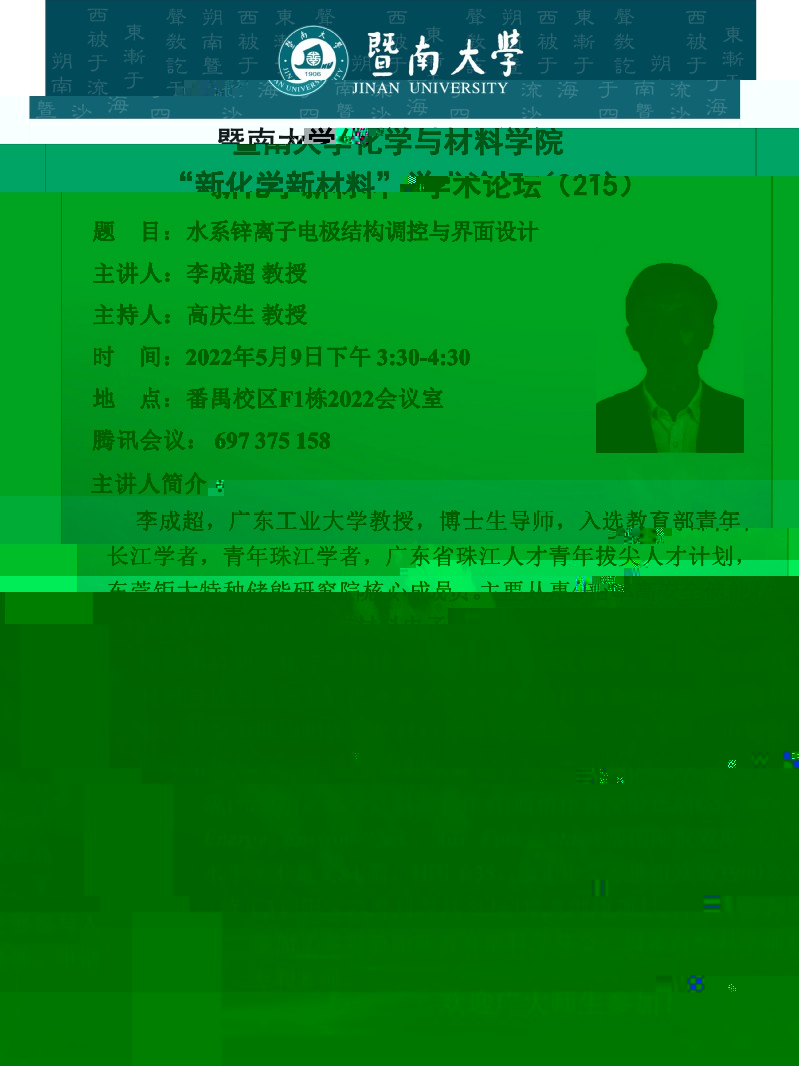 題 目:水系鋅離子電極結構調控與界面設計