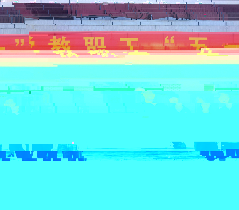 化材院隊伍邁着整齊的步伐,喊着響亮的口号來到主席台前,舞蹈隊的同學們伴随音樂跳起創意舞蹈,為老師們加油助威。