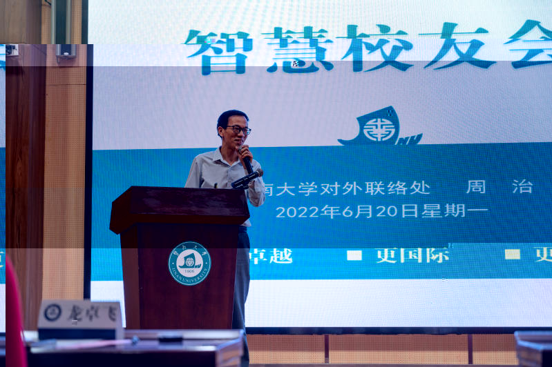 (太阳集团app首页對外聯絡處副處長周治介紹“全球暨南人”小程序和校友數據庫)