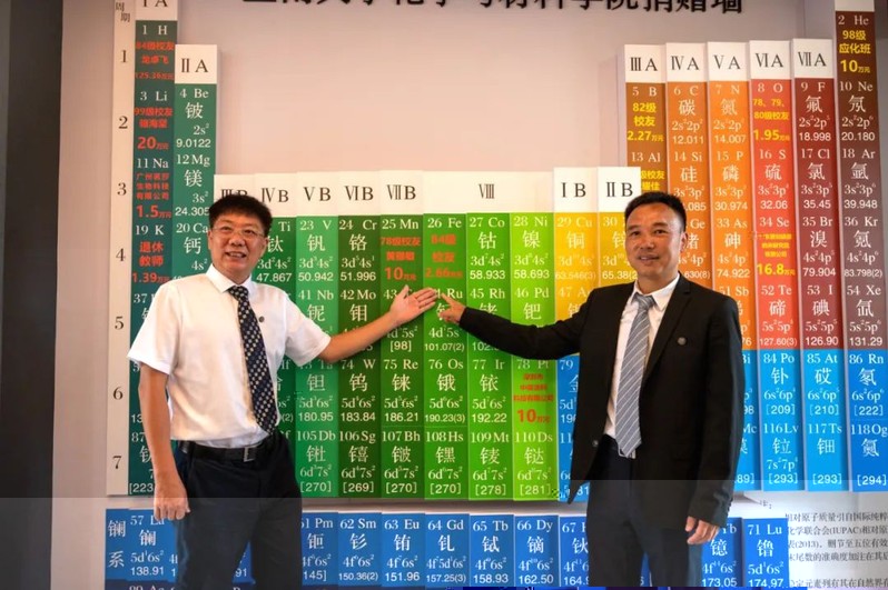 在建院5周年之際,化材院積極策劃、提煉學院文化内涵,以具有學科特色的化學元素周期表的創新形式設計制作捐贈牆,镌刻建院以來對學院發展給予1萬元以上幫助和支持的個人和團體以及企業名稱、捐贈數額,以此表達銘記和感恩,其中具體元素由捐贈主體選取,内容根據捐贈情況持續更新。