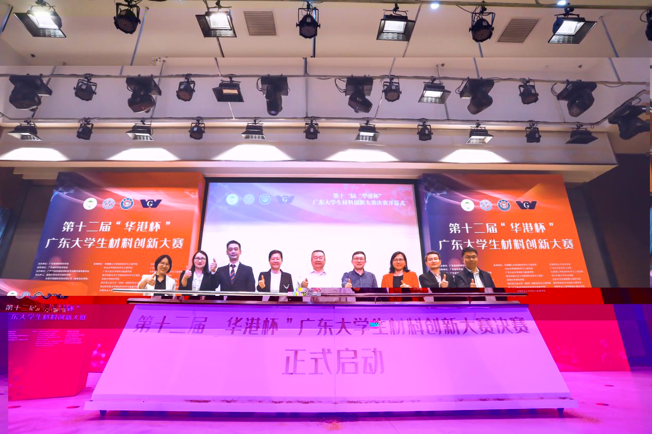 随後,張榮華、邵寶杭、代明江、邵桂珍、黃金安、區向麗、張高祥、陳光慧、孫建莉一道,共同推下啟動杆,标志着第十二屆“華港杯”廣東大學生材料創新大賽正式啟動。
