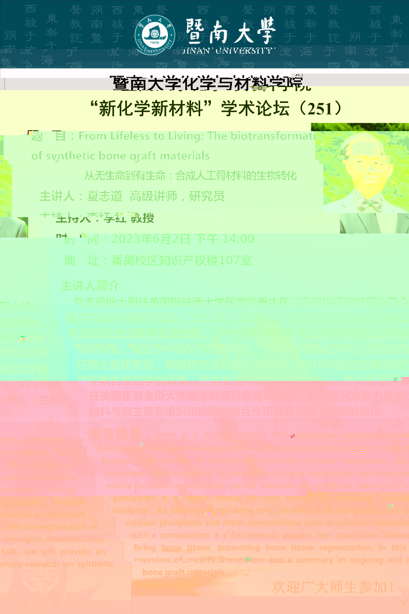 題目:從無生命到有生命:合成人工骨材料的生物轉化