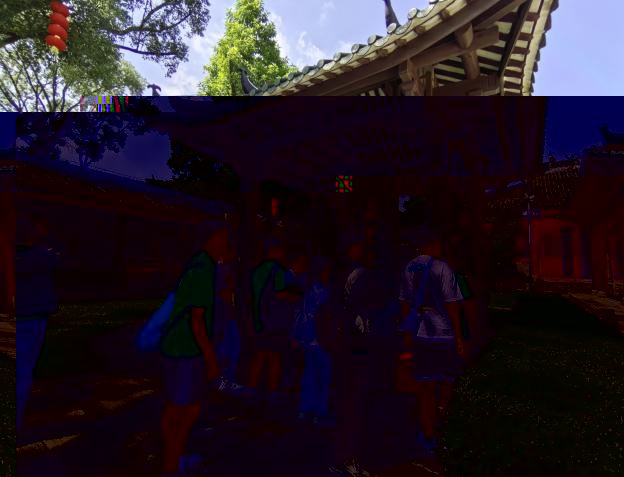 踏入廟宇,陽光吹拂清風,秋意伴随,仿佛海神在歡迎各位師生的到來。“海不揚波”牌坊映入眼裡,雄偉地矗立在廟前,師生一行穿過石牌坊進入海神廟,碑林整齊劃一的排成一列,記錄着古人在嶺南留下的詩文書法,無不吸引着師生們駐足觀看。再深入是康熙親筆寫下的“萬裡波澄”,原迹雖已損壞,但康熙對祭南海神的重視,也體現了航海對當時社會的重要程度。在參觀神廟過程中,不少同學還仿效先人祭拜祈福、許下心願。時過境遷人依舊,人們對平安喜樂的美好願景始終不變。